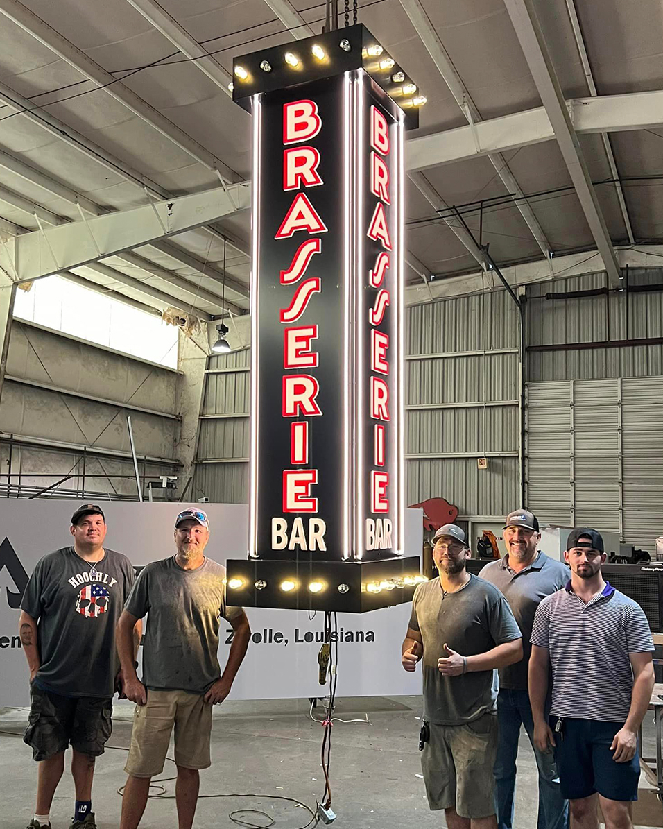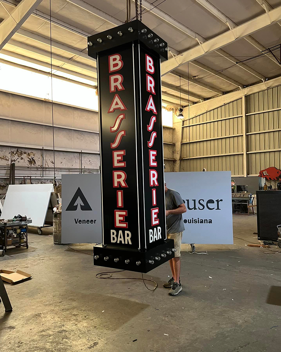 Working with the crew of Bistro Byronz, or now-known as Brasserie Byronz, was a pleasure. They came to us with a vision to bring a classic New York retro style sign to Baton Rouge, and we brought it to life. Even working within city ordinances, we were able to bring their vision to life.
